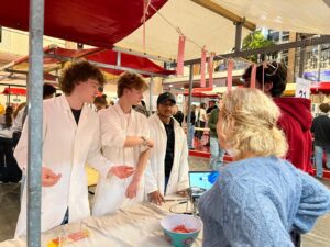 Op donderdag 30 oktober is de CH omgetoverd tot een heuse markt. De leerlingen van 5 havo ‘verkochten’ hun profielwerkstuk aan het toegestroomde publiek vanuit een marktkraam. Leerlingen vertelden vol passie over hun onderzoek, de resultaten en het proces dat zij doorlopen hebben. Docenten, ouders en medeleerlingen hebben hun ogen uitgekeken bij hun tocht langs prachtig aangeklede kramen. Opbouwen en afbouwen werd gezamenlijk opgepakt door de leerlingen, wat sfeer verhogend werkte. Al met al kijken we terug op een succesvolle en feestelijke afsluiting van het profielwerkstuktraject in 5 havo.